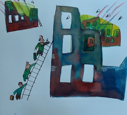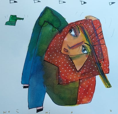 Внутри портфеля мне очень завидует маленькая красная кнопка. Когда моя голова начинает биться об стол, я закрываю глаза и играю, чтобы увидеть, сколько ударов головой я смогу нацелиться на кнопку.